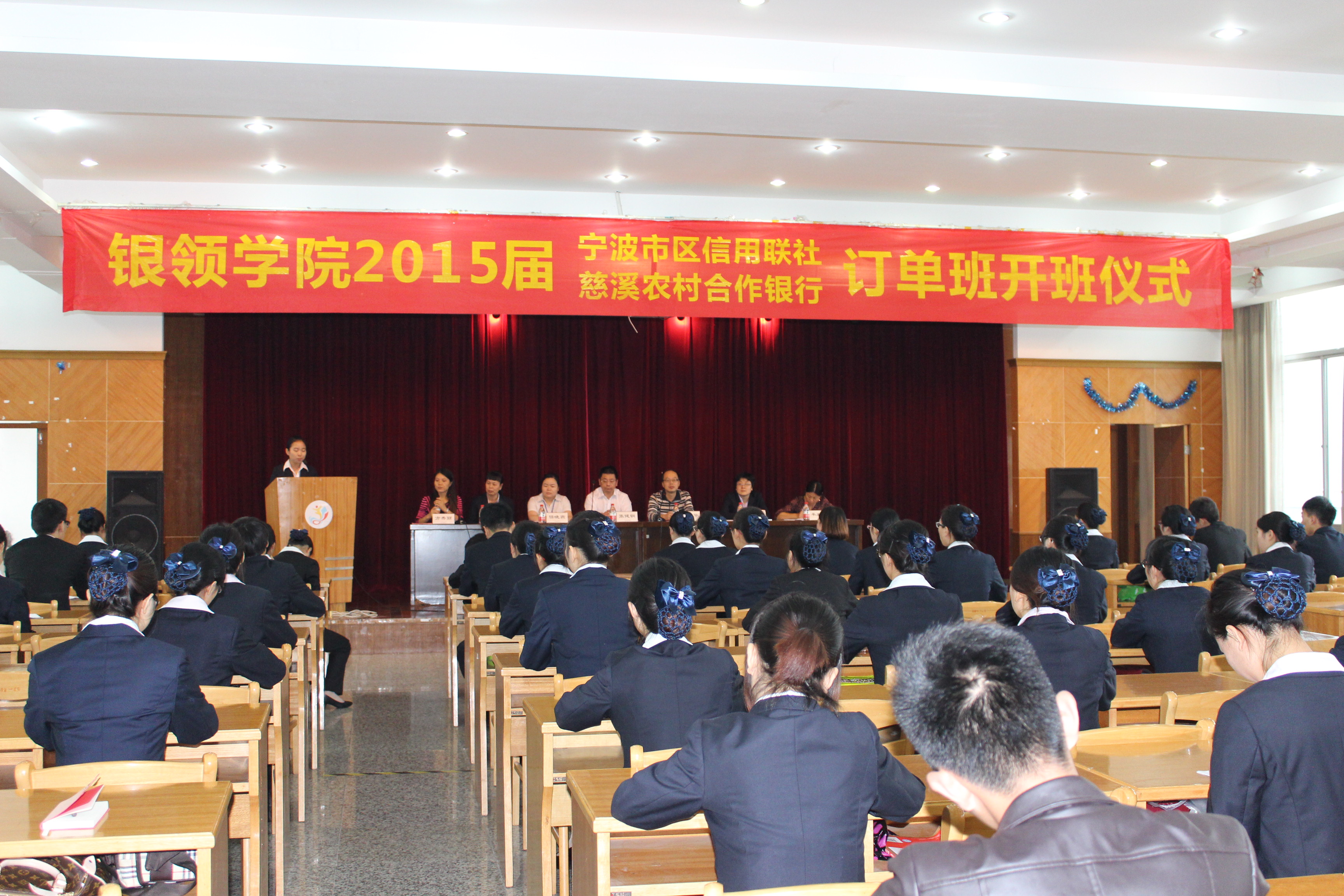 2014年9月19 日下午,7790cnm必发集团2015届宁波市区农村信用联社、慈溪农村合作银行订单班在诚信讲学堂举行开班仪式。出席本次开班仪式的有公司党总支书记、副经理王祝华、7790cnm必发集团经理助理方秀丽,宁波市区农村信用联社副主任张健钢、人力资源部总经理任晓燕,慈溪农村合作银行人力资源部总经理毛海雅、经理丁莹,订单班班主任牟君清以及两家订单班全体同学。仪式由方秀丽老师主持。