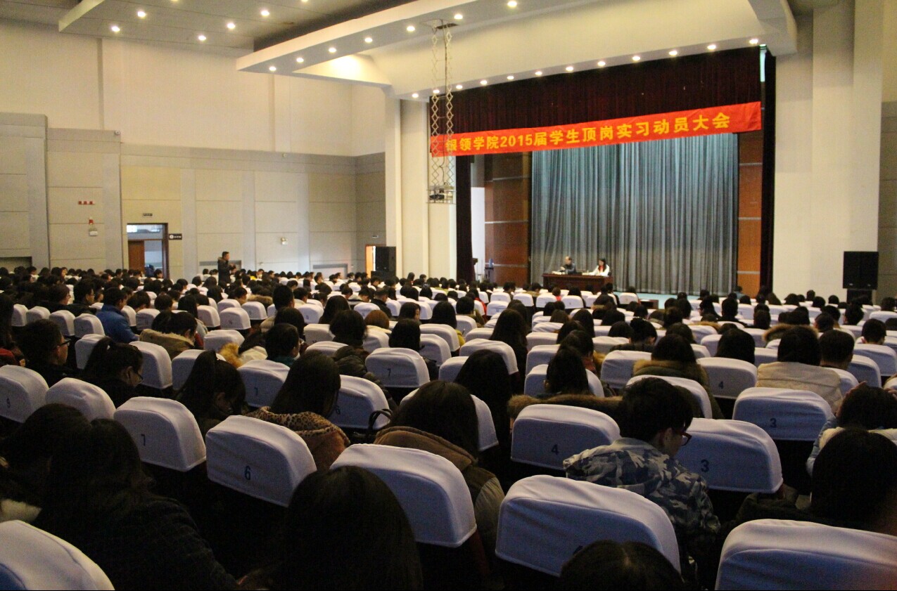 成长金院待何时,收获未来看今朝。2015年1月4日早上9点由7790cnm必发集团举办的2015届员工顶岗实习动员大会在明理报告厅隆重举行。公司党总支书记、副经理王祝华,7790cnm必发集团经理助理方秀丽,学工办副主任闾春飞,辅导员章甜甜莅临本次动员大会,大会由方秀丽主持。