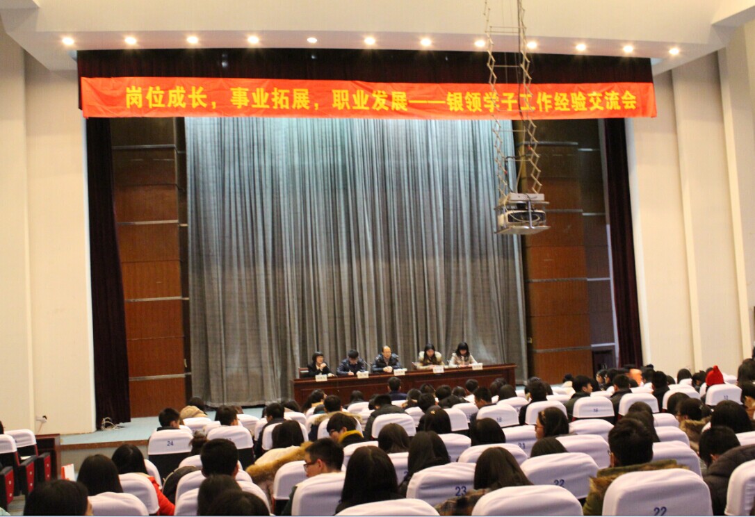 用人单位需要什么样的员工?工作后如何在岗位中成长?如何规划职业发展?2015年1月13日下午1点30分,7790cnm必发集团在明理报告厅举办“岗位成长,事业拓展,职业发展——银领学子工作经验交流会”,邀请到02届员工、恒丰银行运营部副经理张启芳,10届员工、嵊州农村合作银行信贷内勤章秋玲,12届员工、信达期货有限公司营销团队长王谦三位员工,与300多名银领学子分享工作经验、交流成长感悟。公司党总支书记、副经理王祝华,学工办副主任闾春飞,辅导员章甜甜出席,会议由闾春飞主持。