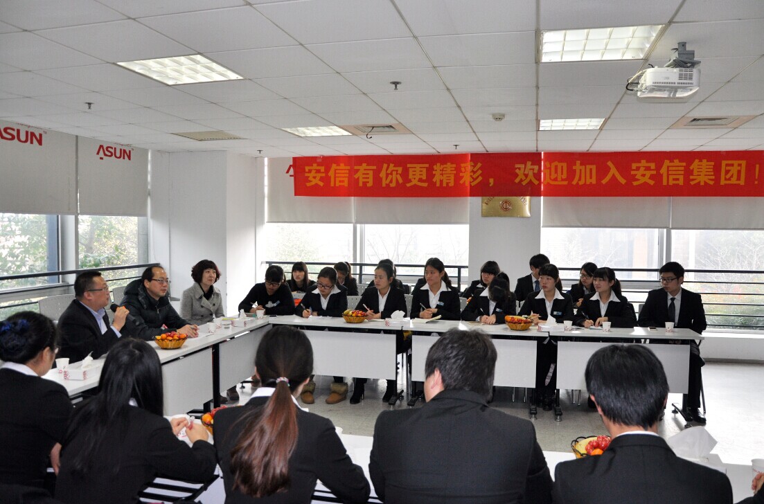 2015年1月16日上午九点,7790cnm必发集团安信订单班实习动员大会在浙江安信资产管理集团有限公司5楼会议室内隆重举行。浙江安信资产管理集团有限公司副总裁耿立强,公司党总支书记、副经理王祝华,安信订单班班主任胡烨丹,辅导员章甜甜以及安信订单班23名学员出席了会议。安信集团人力行政中心招聘主管宣丽萍主持大会。
