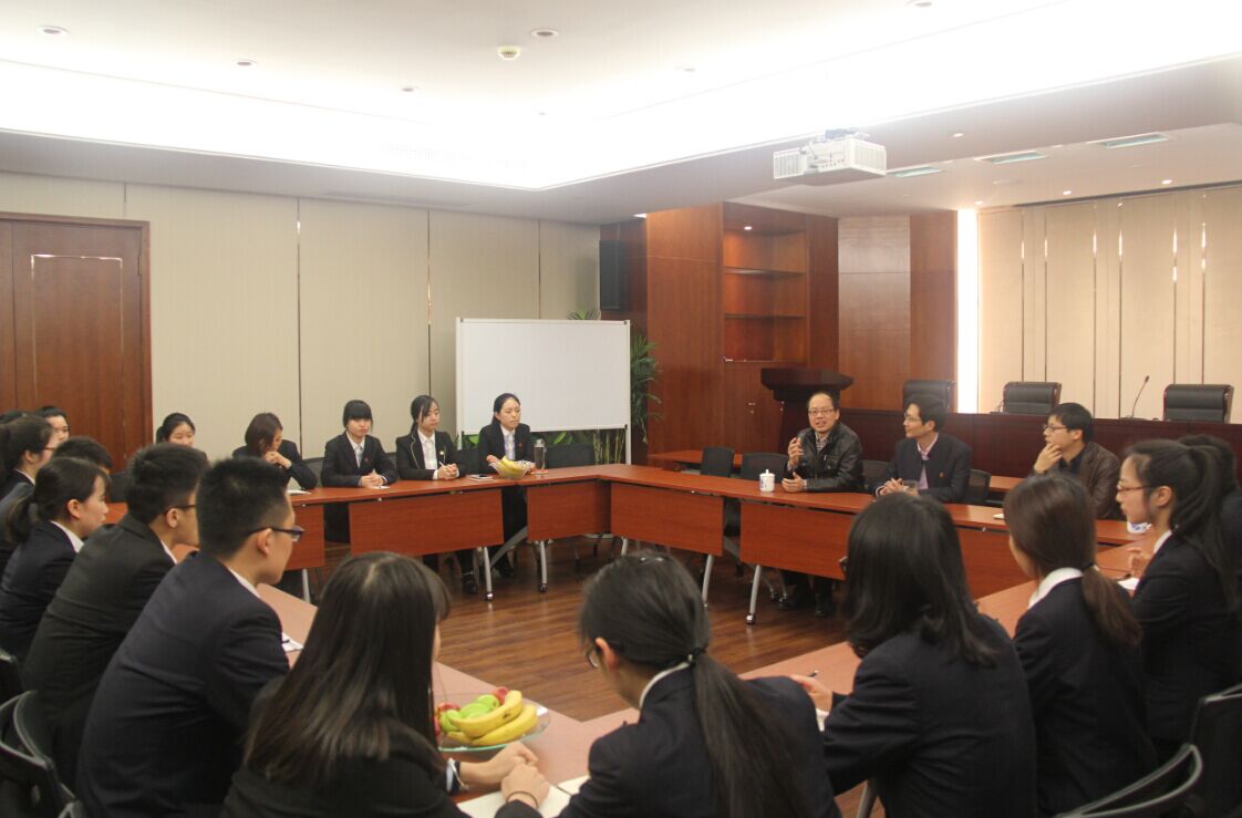 2015年3月26日下午,7790cnm必发集团公司党总支书记、副经理王祝华,7790cnm必发集团国瀚金控订单班班主任陈民,辅导员章甜甜一行来到位于杭州凤起路上的国瀚金控集团总部走访,看望正在这里顶岗实习的25位员工,了解行业的发展状况与人才需求,征询订单单位对人才培养工作的意见建议。